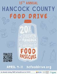 (Ellsworth) No fooling, there’s an amazing amount of food insecurity here in Maine. More than one in ten Maine households goes without suitably nutritious food, making Maine the most food insecure state in New England. There’s also an amazing number of people who turn out to help meet such needs. This Saturday, Healthy Acadia kicks off the 15th annual Hancock County Food Drive, an annual food collection and fundraising project that supports food pantries, free meal programs, and school backpack programs across Hancock County. Look for volunteer first responders and others at local groceries and other locations April 4-11, and please give as generously as you can. The food drive will then continue through April. Learn more at h c food drive dot org.